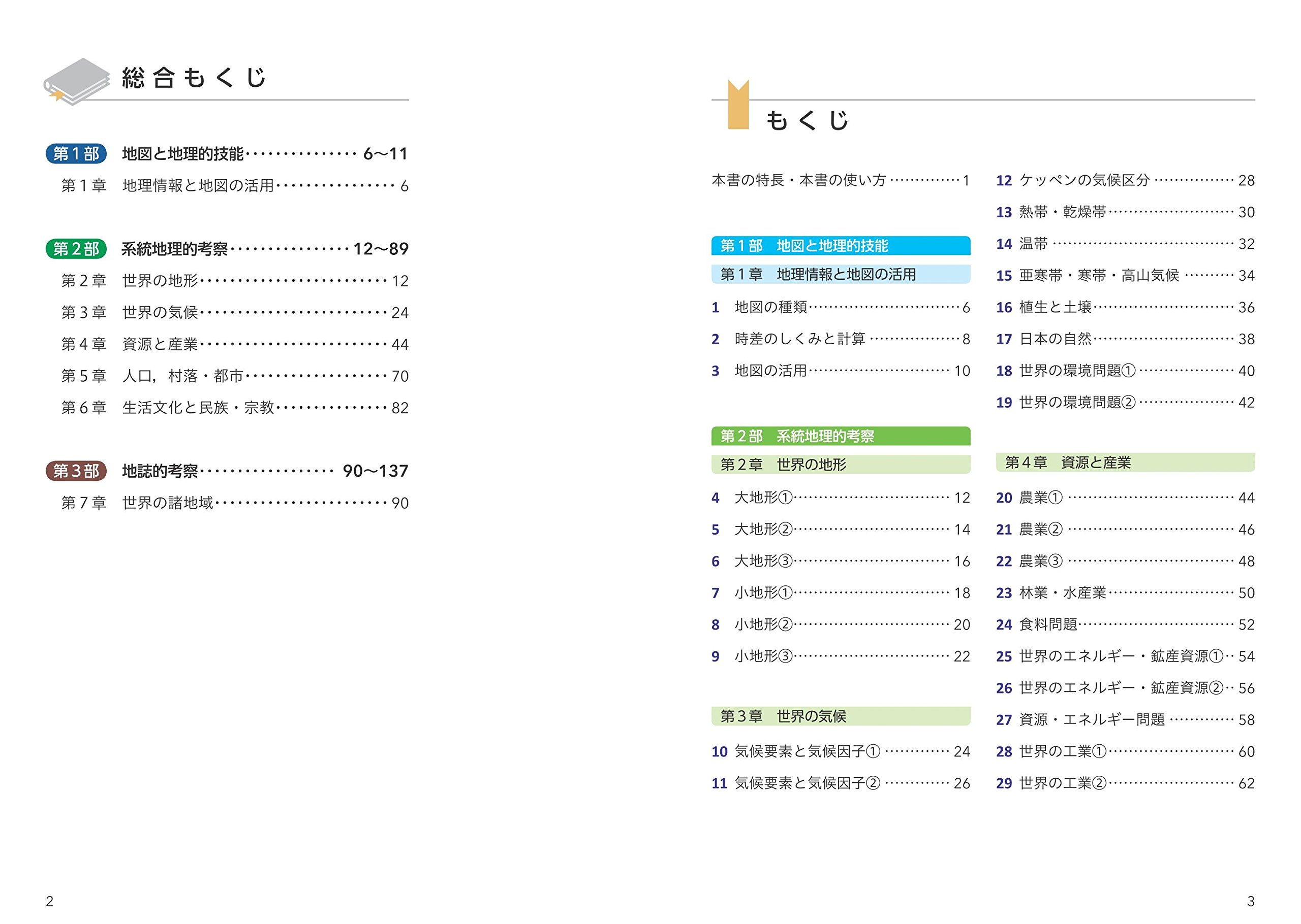 練習問題プリント 世界の姿、環境 世界のすがた 確認 世界のすがた 基本1 世界のすがた 基本2 世界の気候区分 確認 世界の気候区分 基本 世界各地の生活と環境1 確認 世界各地の生活と環境1 基本 世界 戦略02 目的別・好み別おすすめ地理の問題集 地理の問題集は、地理の参考書とおなじように、 ほかの教科に比べて種類が圧倒的にすくない。 そんな選択肢の少ない地理の参考書です 実際に問題を解いて、情報処理能力を上げたり、地理的思考力を養うことが何よりも必要です。 また、 問題を解くことは知識のアップデートにもつながります。 地理の問題を解くなら